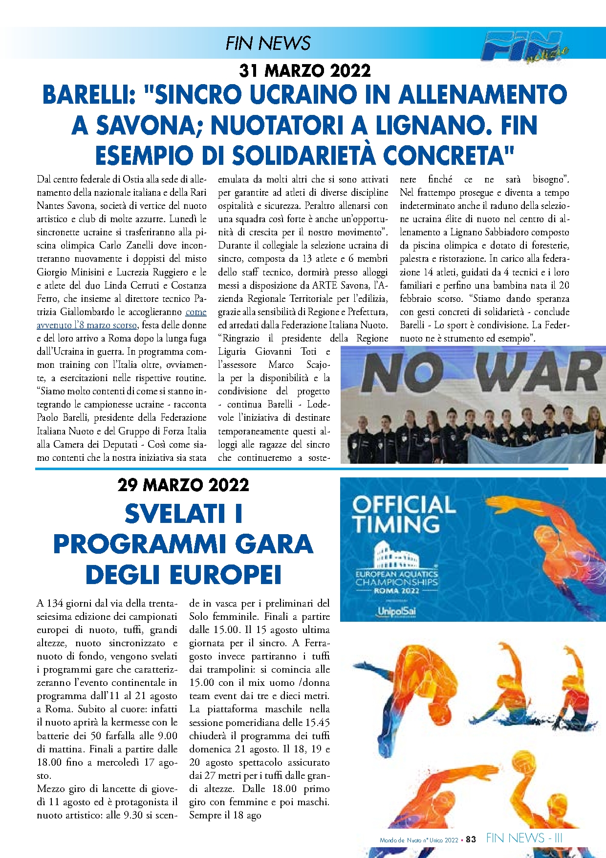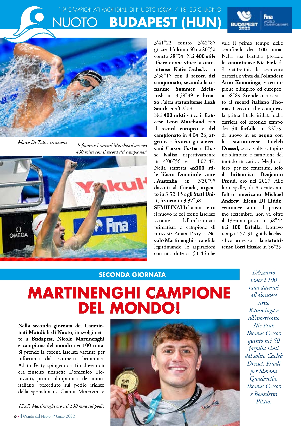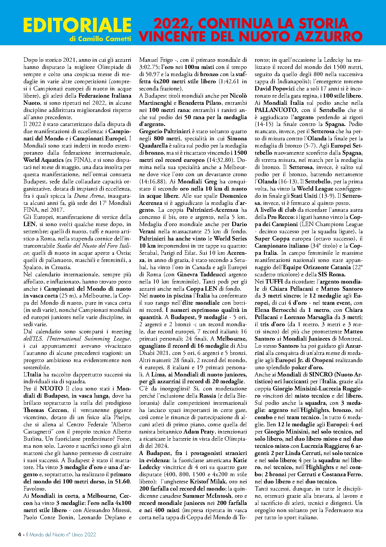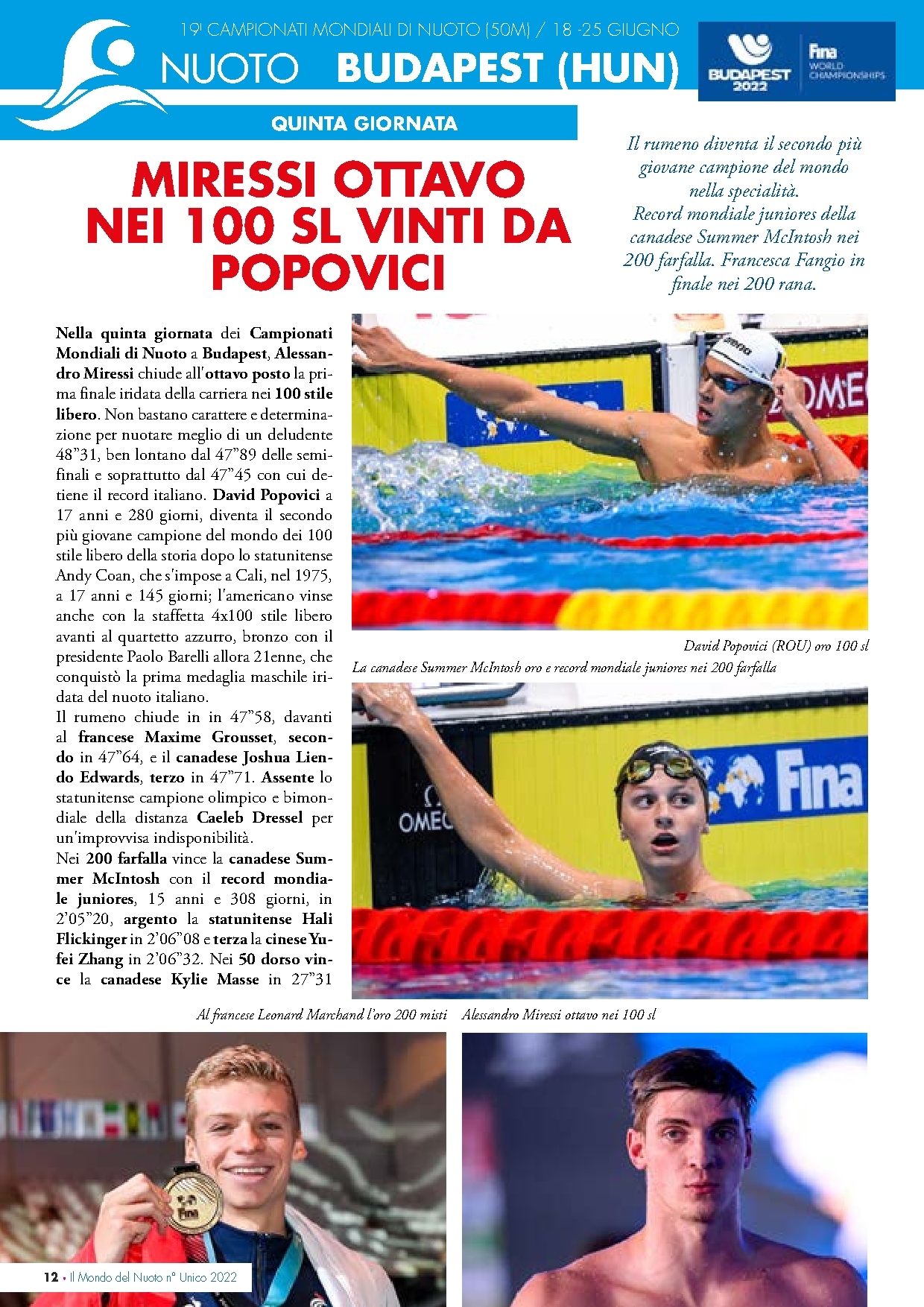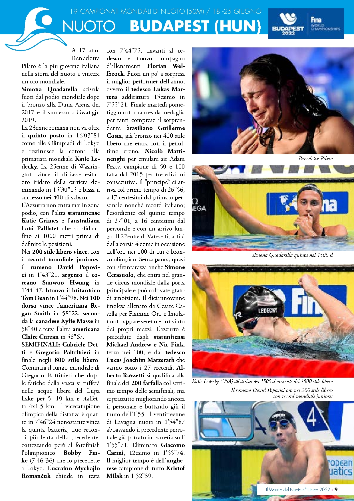 Il mondo del nuoto 2022