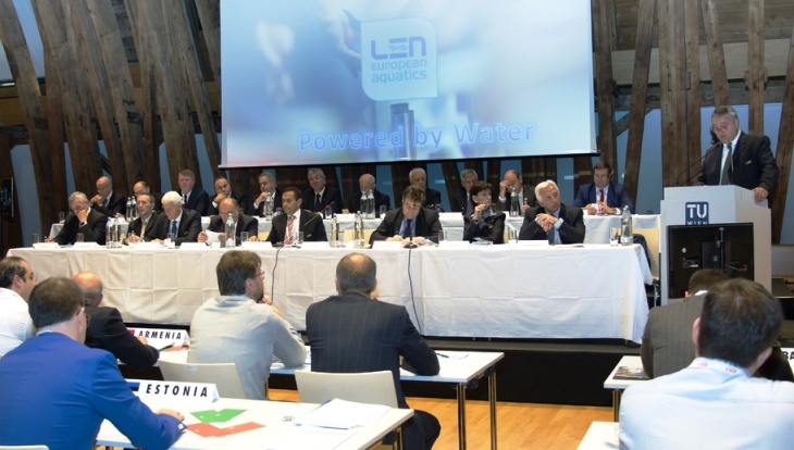 Il giorno precedente il Congresso, il Bureau della LEN (sotto, durante il Congresso) ha assegnato alla Danimarca l’organizzazione dei Campionati Europei di Nuoto in vasca corta del 2017. Barelli ha elogiato così la candidatura danese: “Dopo il successo dei Campionati del 2013 a Herning siamo felici di tornare in Danimarca, sicuri che anche i prossimi campionati saranno un grande successo”.