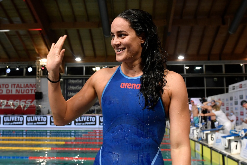 Una rigenerata Silvia Di Pietro vince i 50 stile libero con 24”12. Il suo record italiano è di 23”85 del 24 aprile scorso a Roma. Ultima gara anche per Erika Ferraioli (sotto), arrivata molto tardi al vertice del nuoto, che ha dato un apporto concreto alle staffette azzurre. Chiude al nono posto con 25”09.