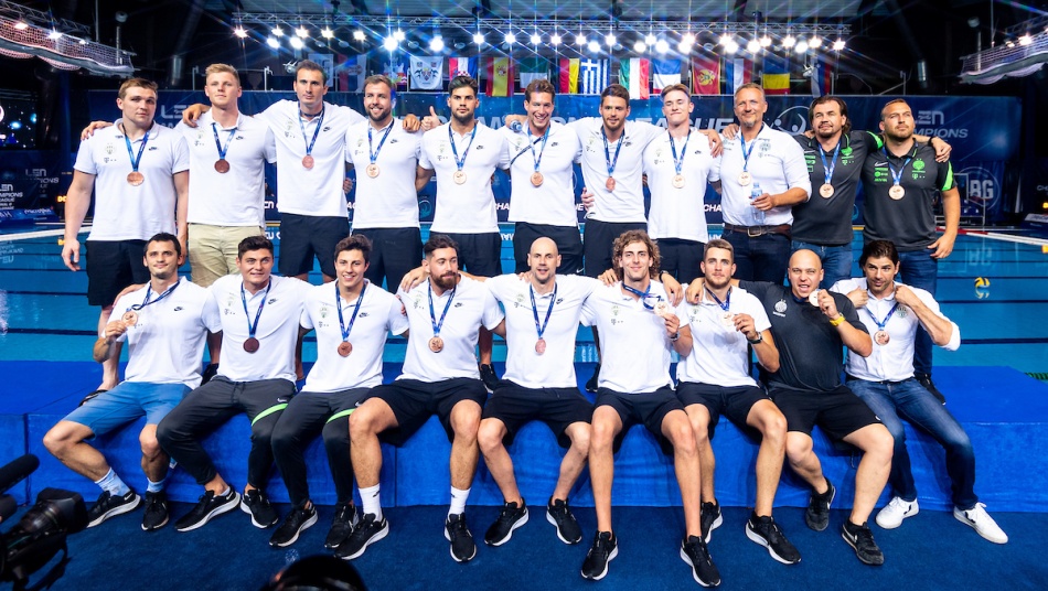 Chiude al quarto posto, dopo aver sfiorato la qualificazione alla finale per il titolo proprio contro il Novi Beograd, l'AN Brescia sconfitta nella finale per il bronzo 14-12 dalla FTC Telekom Budapest (sopra con la medaglia). I lombardi, quasi sempre a rincorrere i magiari, tengono fino al 6-6 di Vincenzo Dolce (sotto in azione) nel secondo tempo. Poi scappano gli ungheresi con due mini break: la doppietta di Vigvari vale l'8-6; in seguito Jansik e Fekete siglano l'11-8 determinante dopo tre quarti di gara.