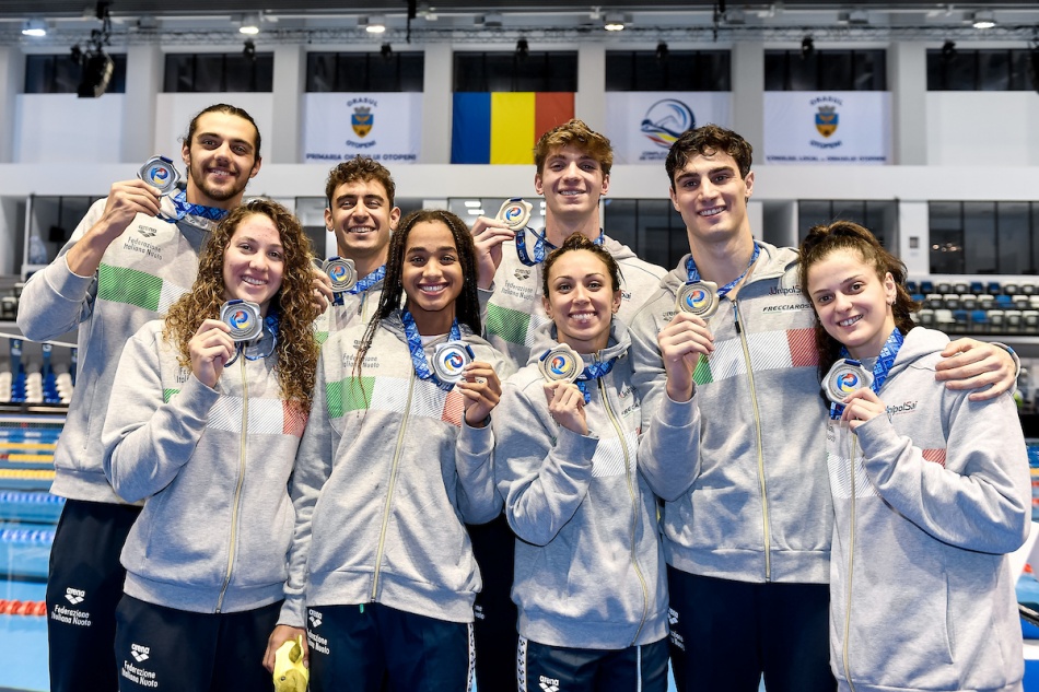 Nella prima giornata dei Campionati Europei in vasca corta, in svolgimento a Otopeni, in Romania, due argenti e sei pass per le finali. Sul finire di giornata le staffette 4x50 stile libero (in copertina le staffette Azzurre con le medaglie) regalano due argenti dal peso specifico notevole.