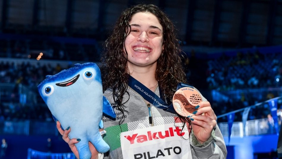 Nell’ottava ed ultima giornata dei Campionati Mondiali a Doha, in Qatar, l’Italia chiude la rassegna iridata con dodici medaglie (2-5-5), tre in più rispetto a Budapest 2022 (5-2-2). Benedetta Pilato (in copertina e sotto) si prende il bronzo nei 50 rana, confermandosi sul podio iridato da cui non è mai scesa da quando aveva 14 anni.